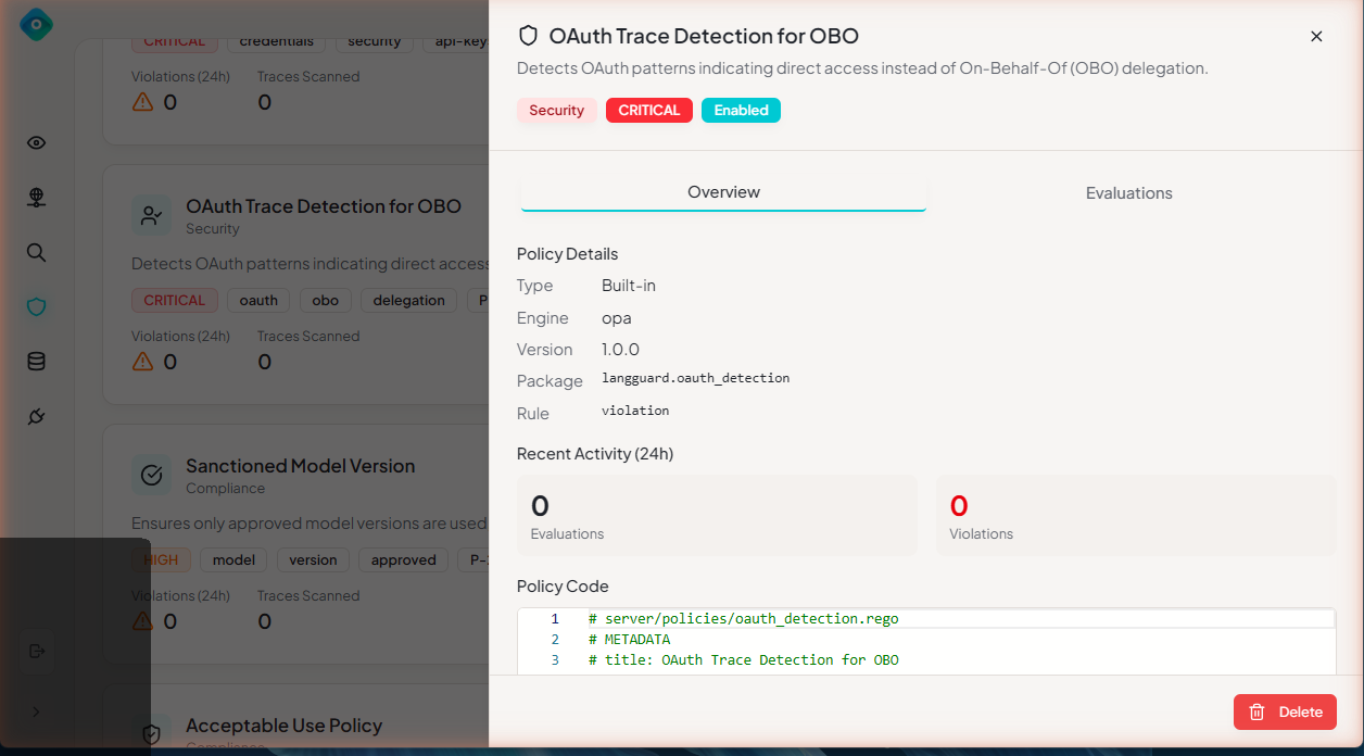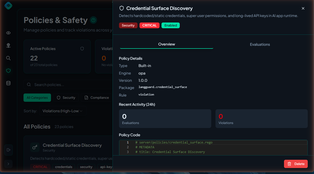 When traces trigger enabled policies, LangGuard records violations with full context for investigation and remediation.