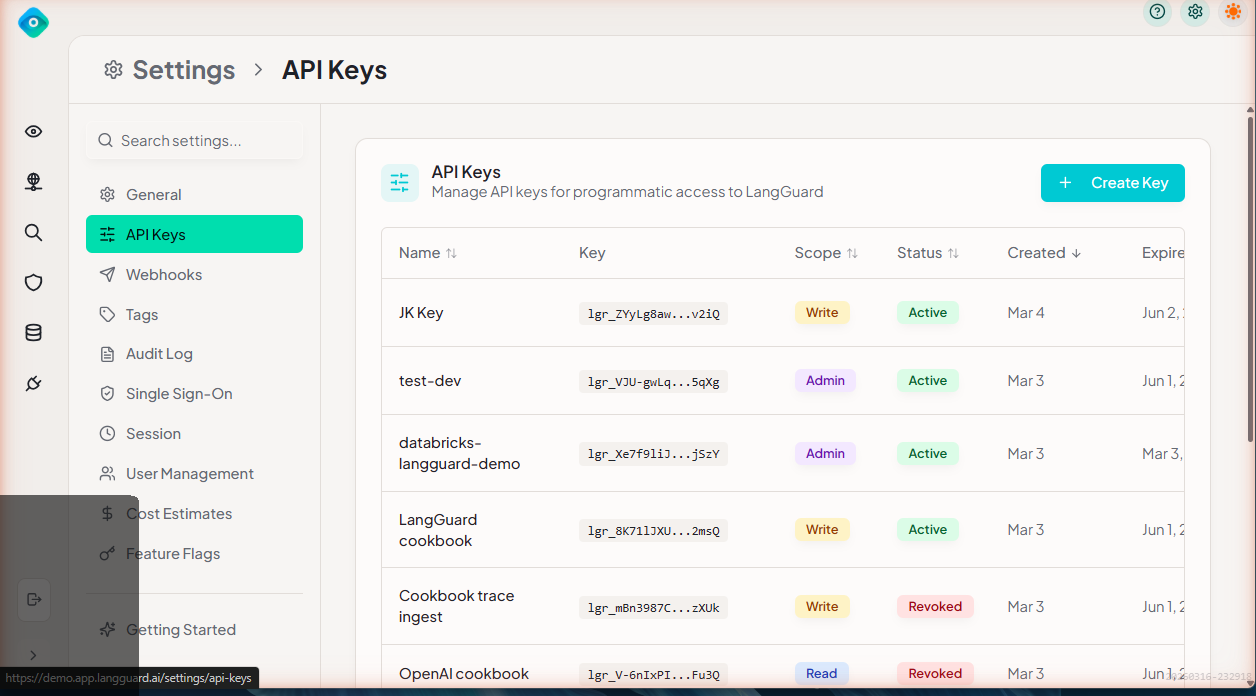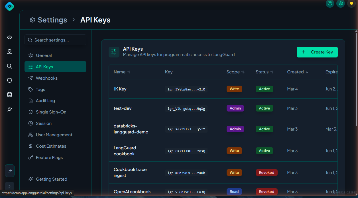- API Access — Interact with LangGuard programmatically (metrics, events, etc.)